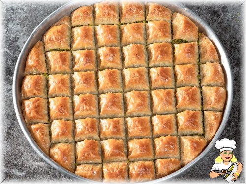 # Katmer: Sabah kahvaltısı olarak tüketilen bir çeşit tatlı. Baklava hamuru ince katmanlar halinde açılır, içine toz şeker, kaymak ve ezilmiş antepfıstığı eklenir ve katlandıktan sonra fırına verilir.