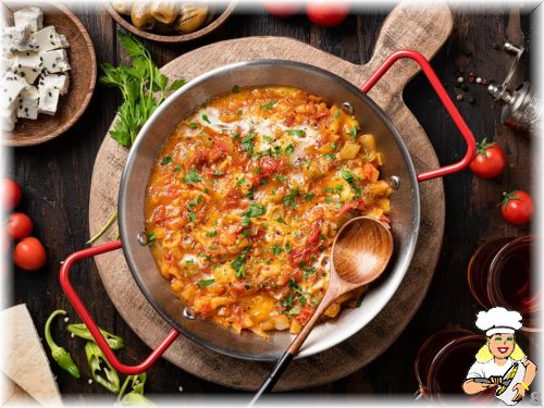 # İmam Bayıldı: Patlıcan, soğan, sarımsak, domates, zeytinyağı ve kesme şeker ile hazırlanan geleneksel bir yemek türü.